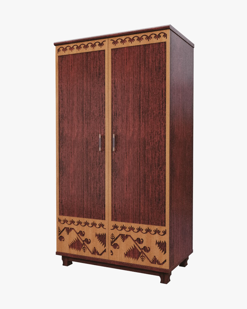 A beautiful peacock design adorns the doors of this Almirah. This design pattern is made keeping modern trends in mind. The design on the doors of the Almirah is digitally printed using Japanese technology whereas the remaining body is painted gray. The Almirah is made from welded steel and is coated with zinc phosphate electrostatic epoxy powder having an oven baked paint finish. Inside the Almirah the space is divided into two. In the top half of the Almirah there are three side shelves and a hanger area for suits or shirts. In the middle there are two lock drawers and in the bottom area are two large spacious shelves.